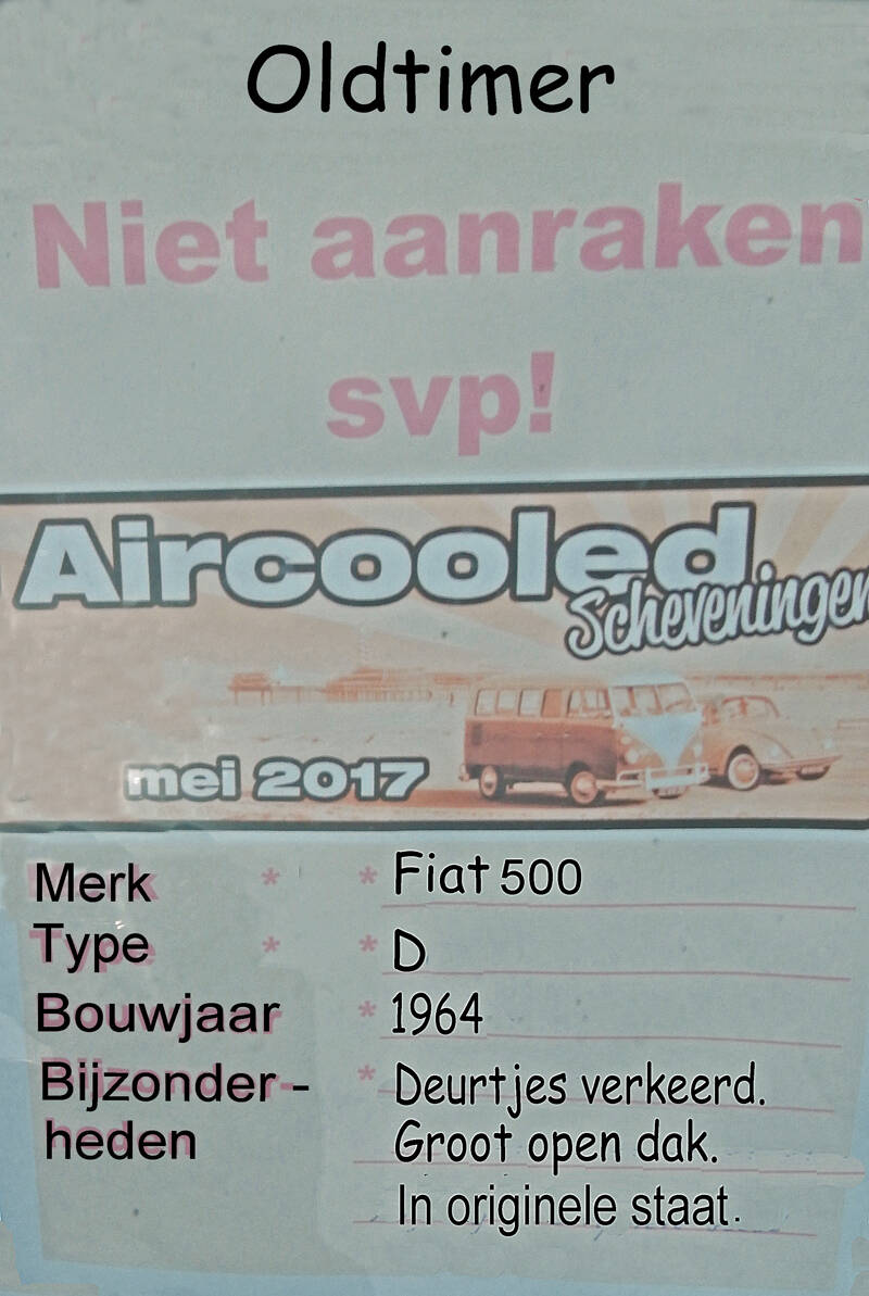Dit evenement staat in het teken van de Fiat 500D. De Fiat 500D die vooral verschilt van de andere Fiat 500 door "de deurtjes verkeerd.'' Maar tussen de D'jes zijn er ook andere verschillen. Zo heeft de ene een lang open dak en de andere weer niet of een asbak en de andere weer niet.